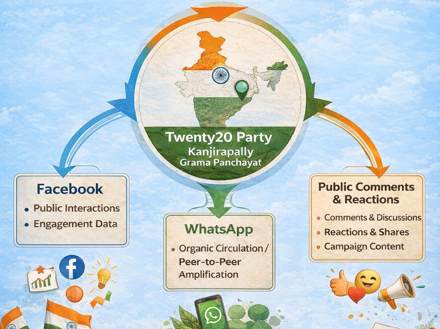 The Twenty20 campaign in Kanjirapally demonstrated that electoral relevance can be built even in politically unfamiliar geographies, provided narrative control and digital execution are approached strategically. Despite structural and organizational constraints, including limited manpower, time, and physical outreach, Twenty20 emerged as a visible disruptor across multiple wards, successfully inserting itself into local political conversations dominated by established players.